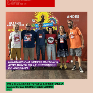 A delegação da ADUFSJ – Seção Sindical participou de forma intensa das atividades do 44º Congresso do ANDES-SN, realizado entre os dias 2 e 6 de março, em Salvador (BA). A participação da seção sindical ocorreu ao longo de tod...